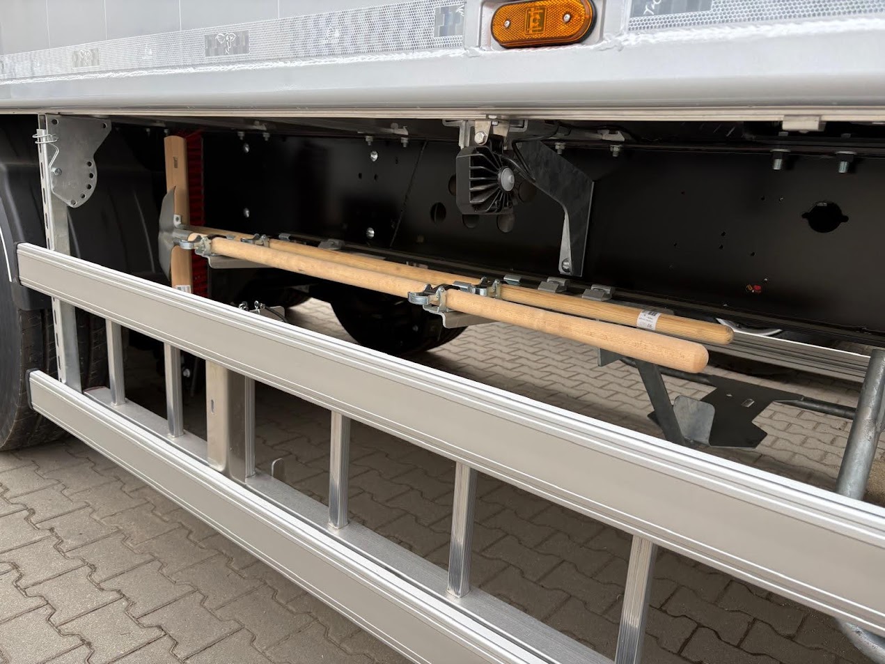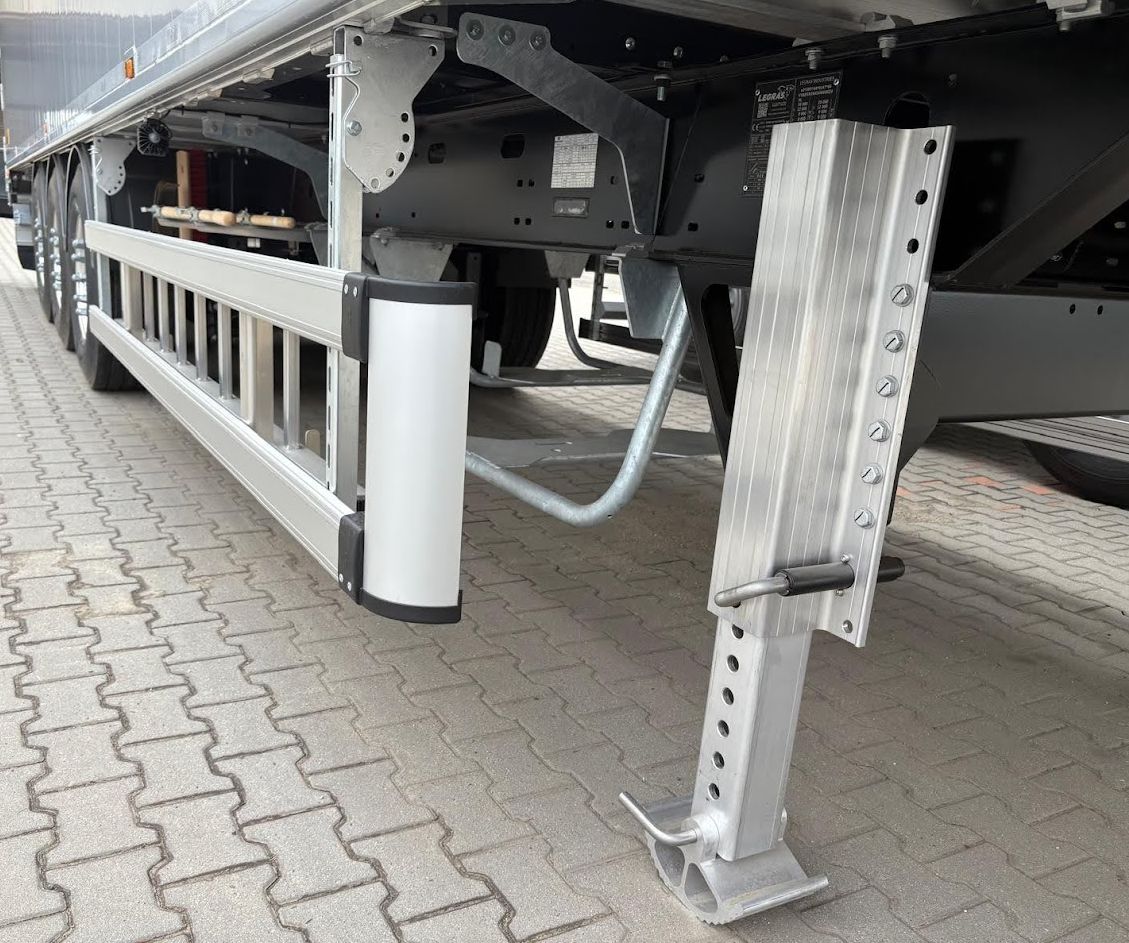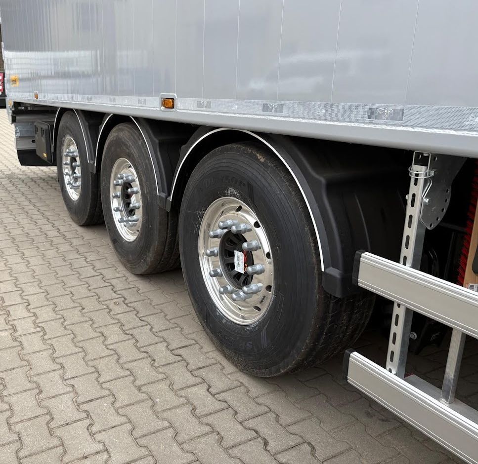 91.2m3, posuvná podlaha Legras (typ 10, zesílená), ocelový rám, nápravy SAF, rozvor 1.310+1.310mm (8t na nápravu), kotoučové brzdy, vyztužená vrata (dvojité těsnění), ABS, EBS Knorr, RSS, TPMS, rolovací plachta (bezkurtový systém uchycení plachty), lávka, vnitřní posuvná stěna, hliníkové podpěrné nohy, schránka na nářadí, ovládání pos.podlahy s kabelem (dl. 10m), držák rezervy (na 1 kolo), zesílené boční stěny (3/2mm), bez vnitřních úchytů (možné dodělat), otvírací příčka nad zadními vraty